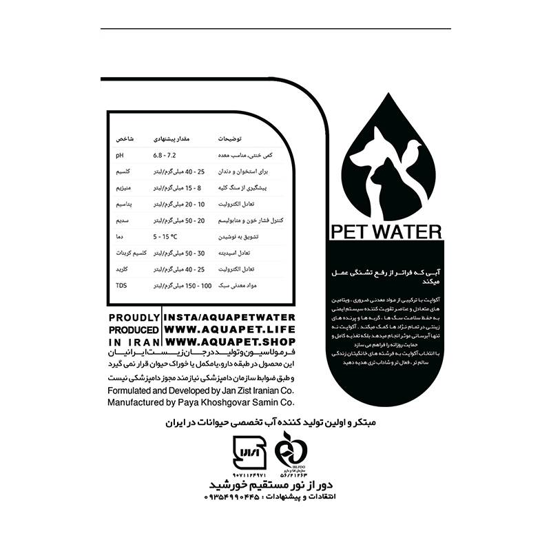 - آب ویتامینه حیوانات که باعث بهبود سیستم ایمنی، سلامت پوست و مو، و افزایش طول عمر