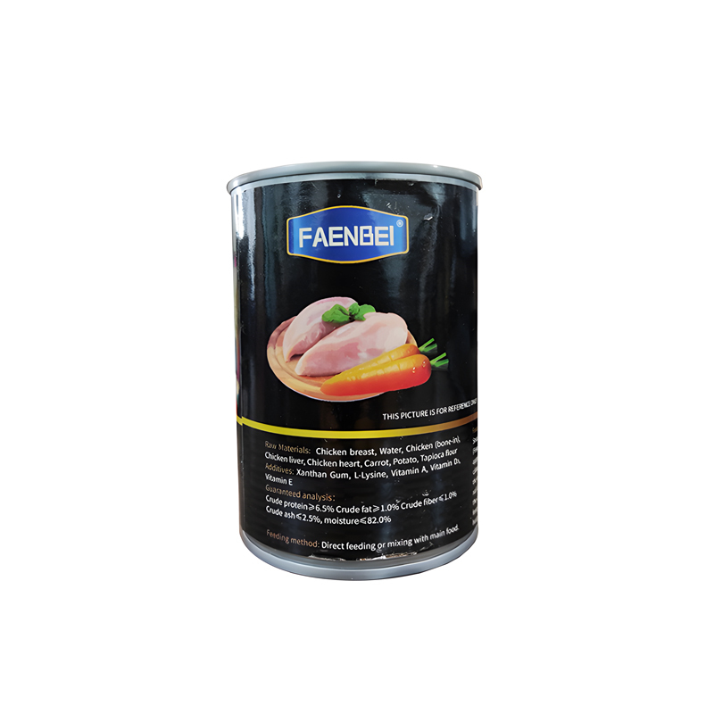 • ترکیبات: آب تصفیه‌شده، سینه مرغ، دل و جگر مرغ، هویج، نشاسته تاپیوکا