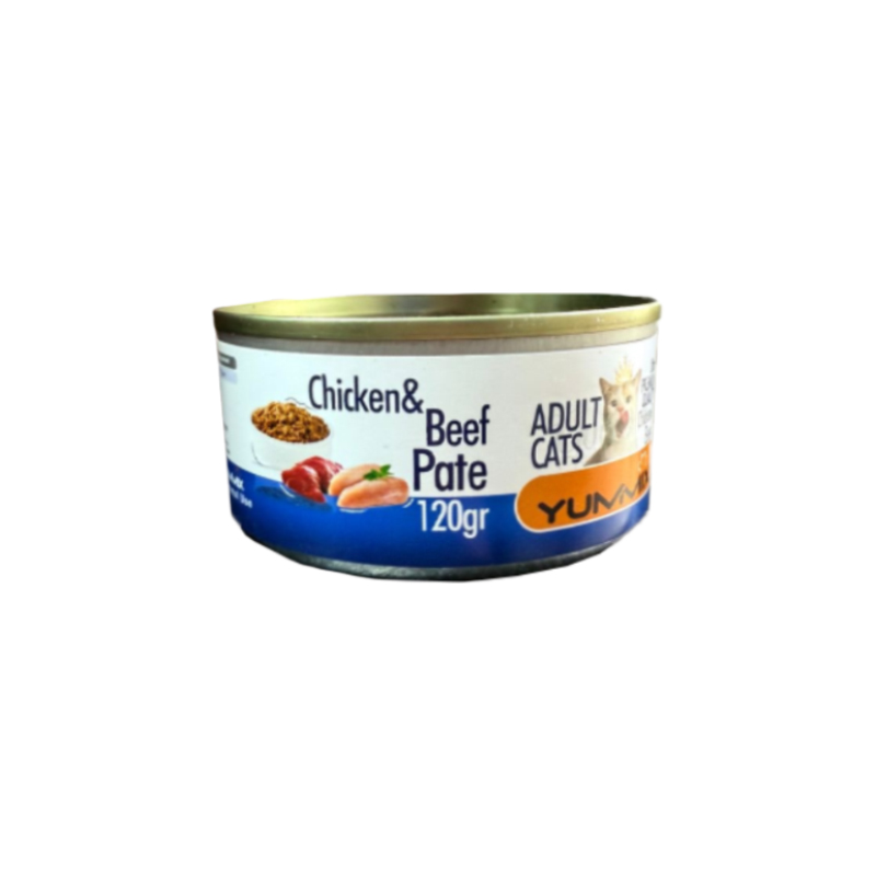 - 1 عدد کنسرو گربه بالغ مدل پته با طعم مرغ و گوشت گاو وزن 120 گرم
