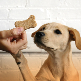 بافت تشویقی بیسکویتی سگ ترد است و در طعمهای مختلفی به تولید میرسد. این تشویقی بسیار مورد علاقه سگها است.