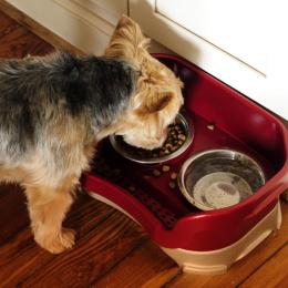 این ظرفها با داشتن یک پایه از سطح زمین بالاتر قرار میگیرند و این ویژگی باعث میشود تا سگ برای خوردن آب و غذا ناچار نباشد سر خود را پایین بیاورد. این ظروف برای سگهای نژاد بزرگ بسیار مناسب هستند.