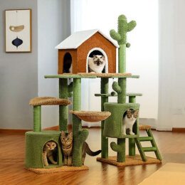 خانه و درخت گربه دو وسیله بسیار حیاتی در نگهداری از گربهها هستند که باید در هنگام به سرپرستی گرفتن گربه خریداری شوند. این دو وسیله در بیشتر موارد جدا از یکدیگر استفاده میشوند؛ اما در برخی مدلهای درخت گربه، ممکن است در کنار یکدیگر قرار بگیرند. گربهها برای داشتن یک زندگی بهتر به هر دوی این وسایل نیاز دارند. خانه گربه مکانی امن برای استراحت آنهاست و درخت گربه مکانی ایدهآل برای بازی و خراشیدن ناخنهاست تا نیازهای غریزیشان برطرف شود.