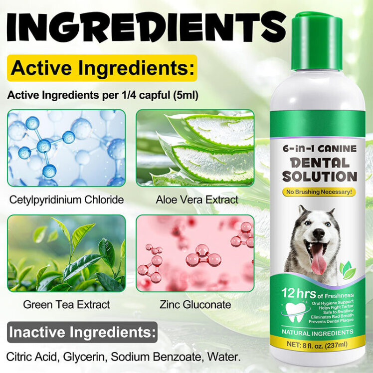 محلول مراقبت از دهان مخصوص سگ اویمال حاوی عصاره آلوئهورا و چای سبز حجم 237 میلیلیتر اتمام موجودی تاریخ انقضا: 06/2027