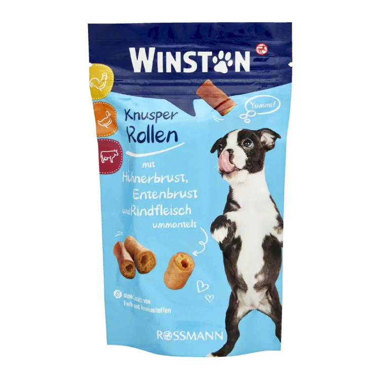 تشویقی رولی سگ وینستون با طعم مرغ ، اردک و گوشت گوساله وزن 85 گرم اتمام موجودی تاریخ انقضاء : 09/2025