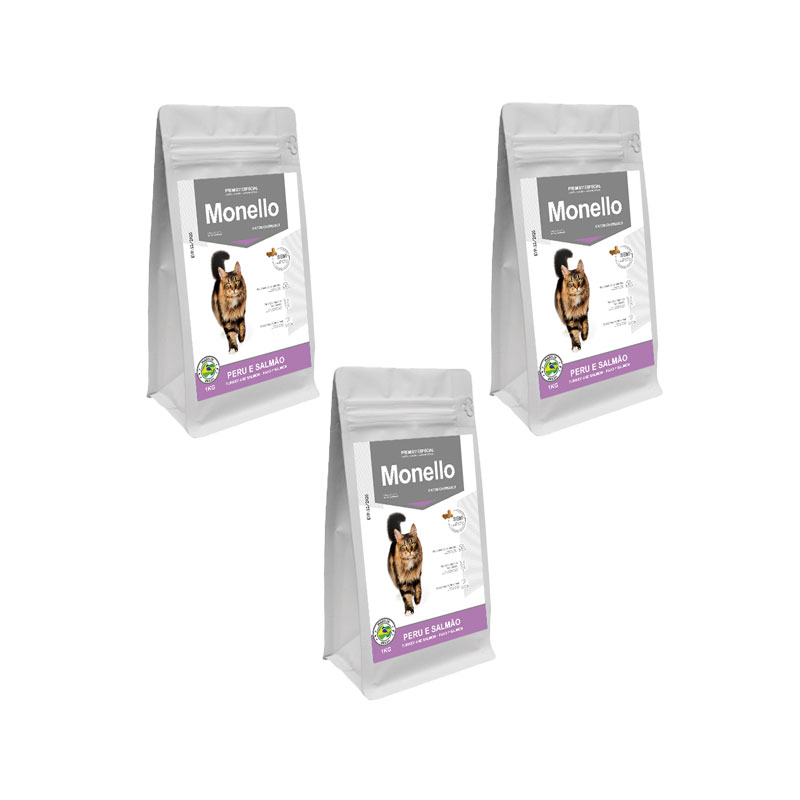 غذای خشک گربه عقیم شده مونلو با طعم بوقلمون و ماهی سالمون Monello Sterilised بسته 3 عددی