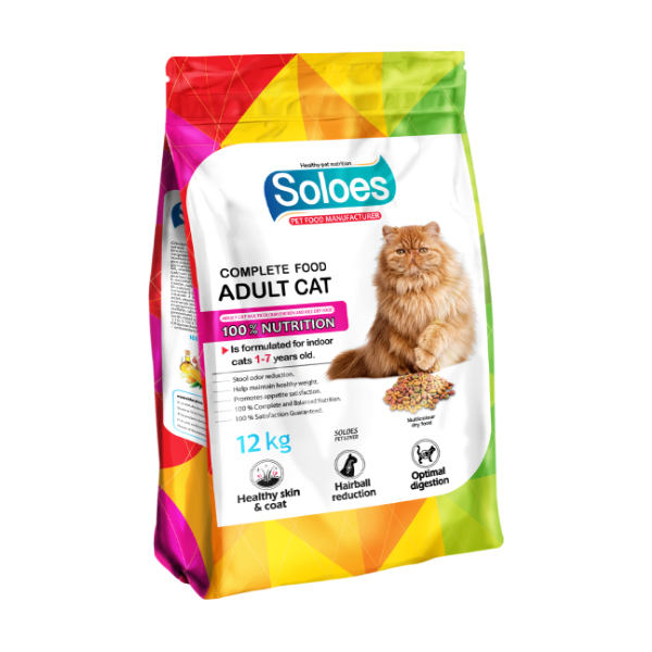 غذای خشک گربه بالغ مولتی کالر سولواس با طعم مرغ وزن 12 کیلوگرم