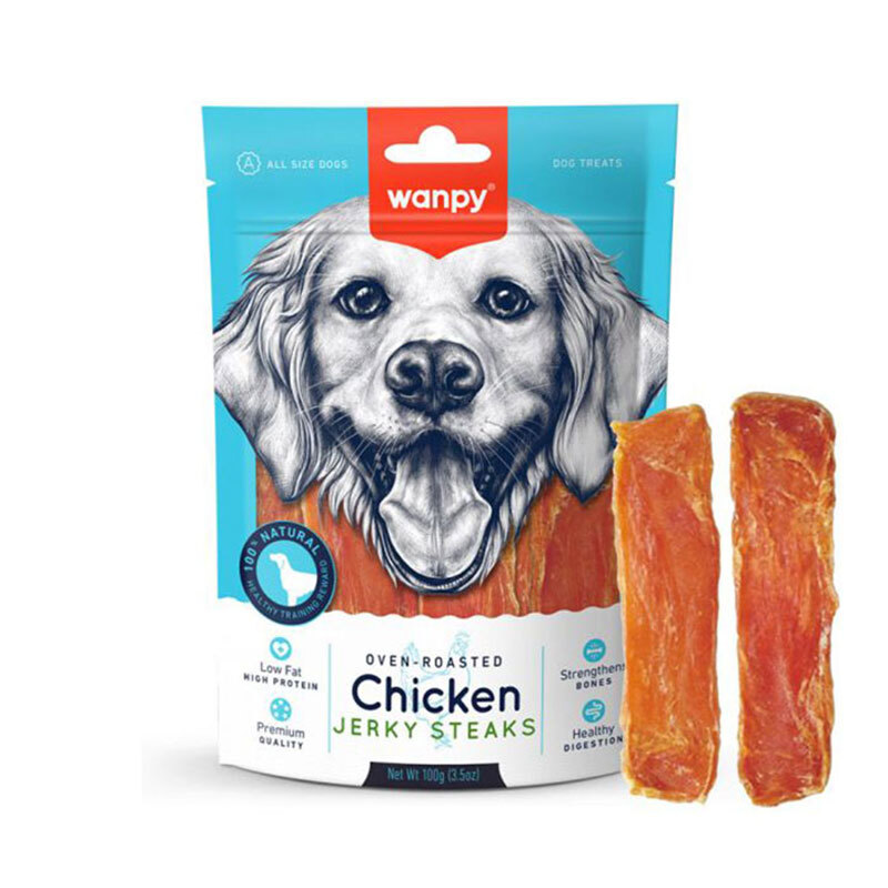 تشویقی سگ ونپی با طعم استیک مرغ Wanpy Dog Treats Chicken Jerky Steaks وزن 100 گرم