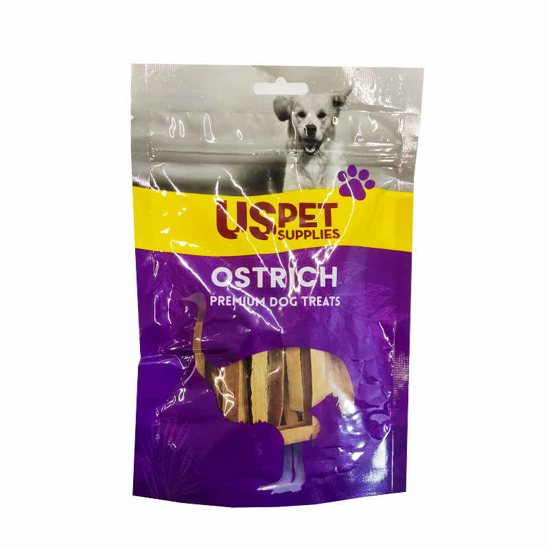 تشویقی سگ یو اس پت با گوشت شترمرغ و ماهی مدل نواری وزن 100 گرم