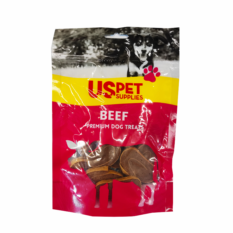 تشویقی سگ یو اس پت با گوشت گاو مدل کالباسی وزن 100 گرم
