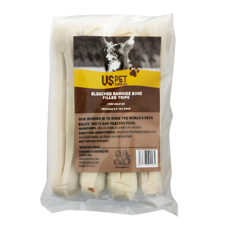 تشویقی سگ یو اس پت مدل استخوان پر شده با سیرابی ۱۵ سانتی وزن 500 گرم