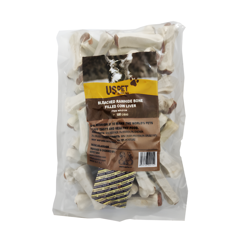 تشویقی استخوانی سگ یو اس پت مدل ۵ سانتی با مغز جگر وزن 500 گرم