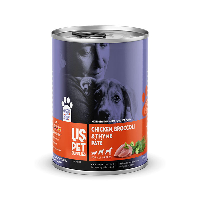 کنسرو غذای توله سگ یو اس پت مدل های پریمیوم با طعم مرغ و بروکلی و آویشن USPet Dog Canned Food وزن 800 گرم