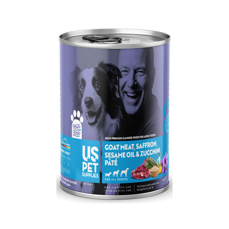 کنسرو غذای سگ یو اس پت مدل های پریمیوم با طعم گوشت بز، زعفران، روغن کنجد و کدو سبز USPet Dog Canned Food وزن 800 گرم