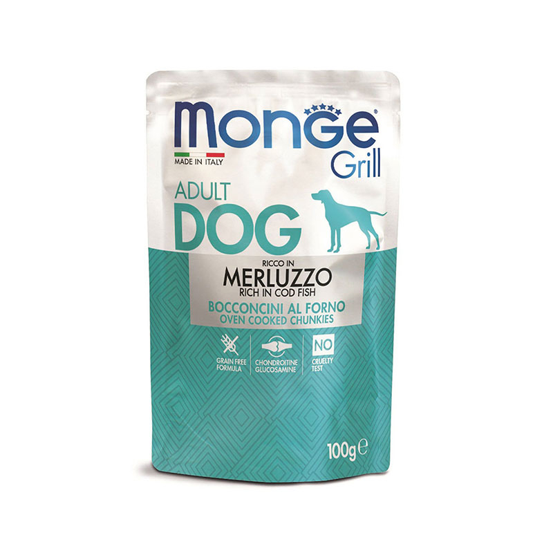 پوچ سگ مونژ با طعم ماهی کاد Monge Grill Adult Dog Pouch وزن 100 گرم