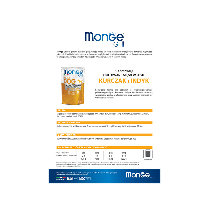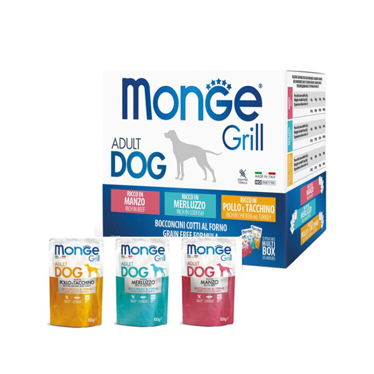 پوچ سگ مونژ با طعم مرغ و بوقلمون Monge Grill Adult Dog Pouch وزن 100 گرم
