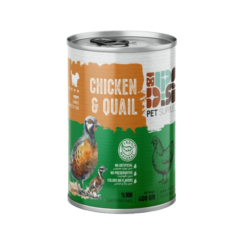 کنسرو توله سگ دی پی اس نچرال با طعم گوشت مرغ و بلدرچین وزن 400 گرم