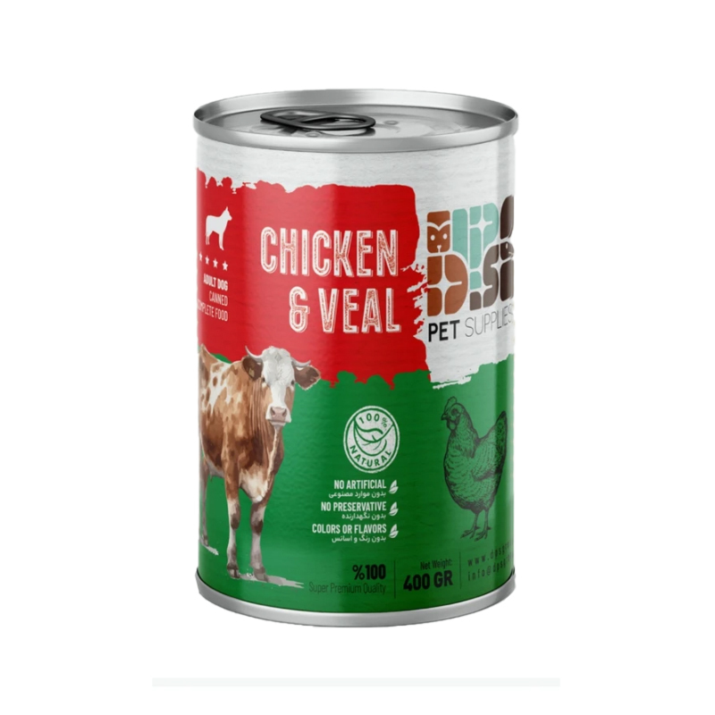 کنسرو سگ دی پی اس مدل نچرال با طعم گوشت مرغ و گوساله وزن 400 گرم