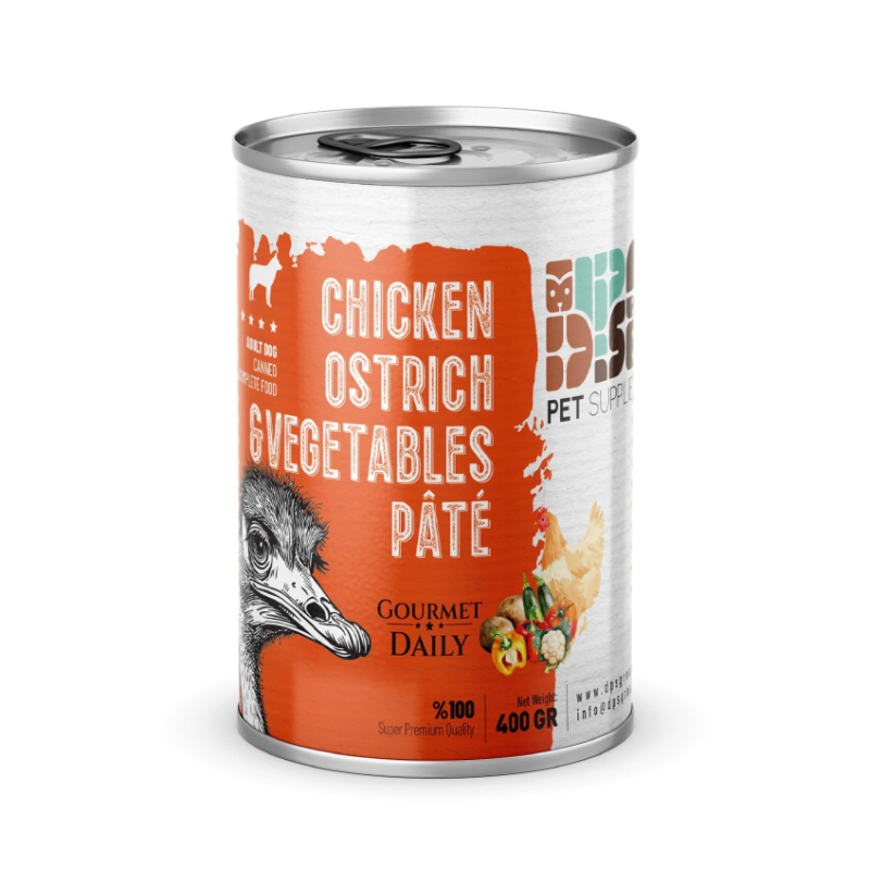 کنسرو غذای سگ دی پی اس مدل پته با طعم گوشت مرغ و شترمرغ و سبزیجات وزن 400 گرم