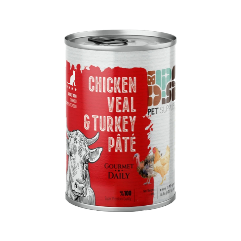 کنسرو گربه دی پی اس مدل پته با طعم گوشت مرغ و گوساله و بوقلمون وزن 400 گرم