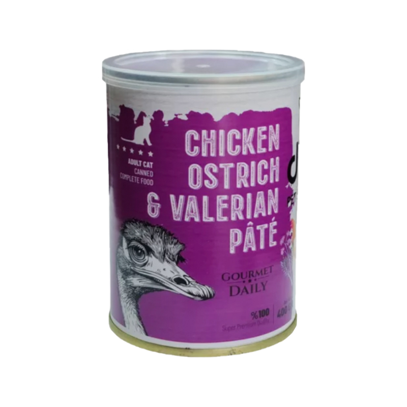 کنسرو گربه دی پی اس مدل پته با طعم گوشت مرغ و شتر مرغ و سنبل الطيب وزن 400 گرم