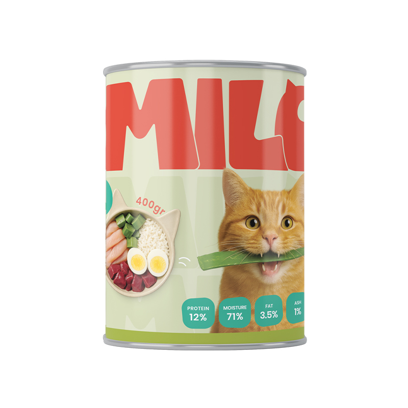 کنسرو گربه اومیلو مدل نچرال با طعم گوشت مرغ و آلوئهورا وزن 400 گرم