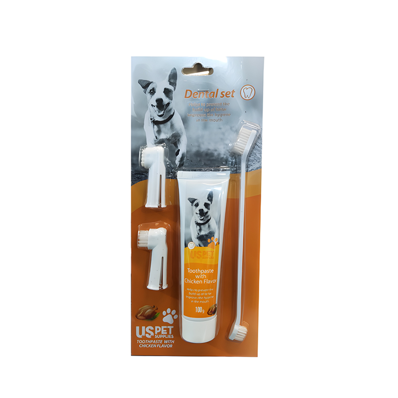 ست مسواک و خمیردندان مخصوص سگ یواسپت با طعم مرغ حجم 100 میلیلیتر