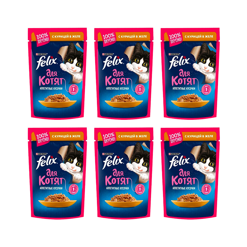 پوچ بچه گربه فلیکس با طعم مرغ بسته 6 عددی