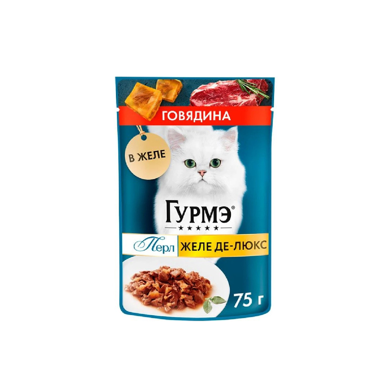 پوچ گربه گورمت مدل پرل با طعم گوساله در ژله وزن 75 گرم