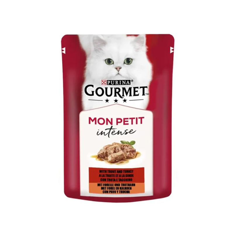 پوچ گربه گورمت با طعم قزل آلا و بوقلمون در سس وزن 50 گرم