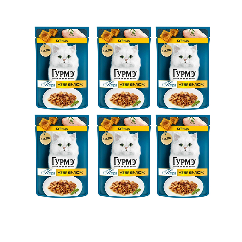 6 عدد پوچ گربه گورمت مدل پرل با طعم مرغ در ژله مخصوص وزن 75 گرم