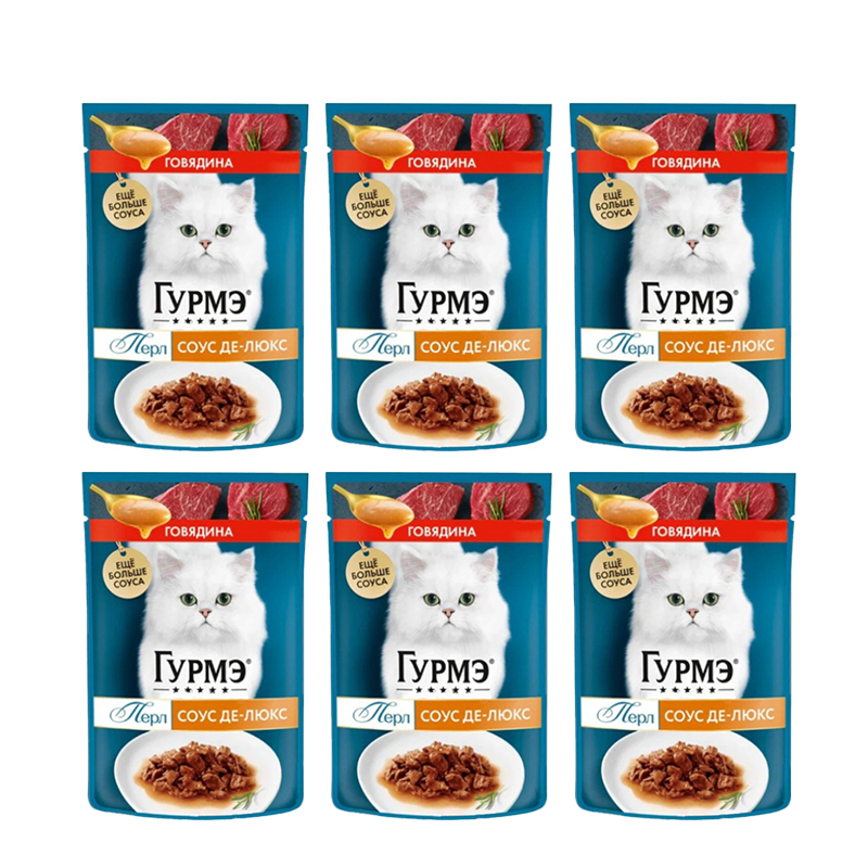 - 6 عدد پوچ گربه گورمت مدل پرل با طعم گوشت گاو در سس ویژه وزن 75 گرم
