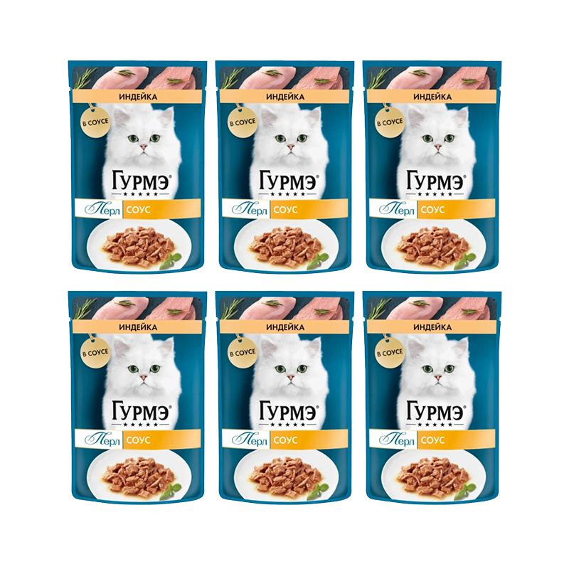 6 عدد پوچ گربه گورمت مدل پرل با طعم بوقلمون در سس وزن 75 گرم