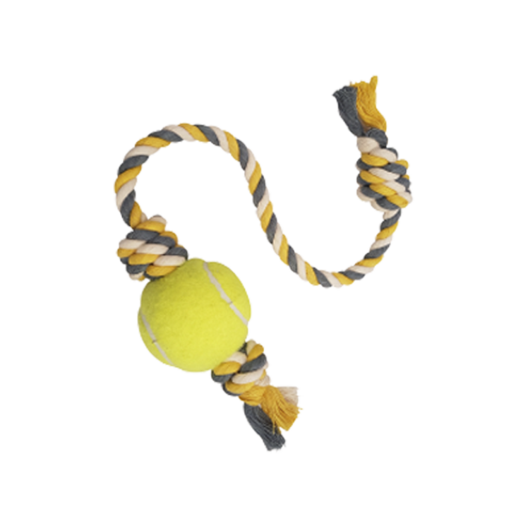یکی از بدترین عادات سگ ها می تواند رفتار تهاجمی آن ها در ارتباط با افراد یا وسایل جدید باشد. اگر حیوان خانگی شما گهگاهی رفتاری خلاف عادات خود نشان می دهد، شاید دچار احساسات منفی شده است. در این چنین وضعیتی، هیچ راه حلی غیر از تفریح به طور ویژه بازی کردن وجود ندارد. در ضمن این رفتارهای غیرمعمول گاهی ممکن است به شما و یا وسایلی که در محیط اوست، آسیب جدی برساند. بنابراین نباید این تحرکات را کوچک بشمارید. یکی از وسایلی که می تواند باعث کاهش فشارهای عصبی و بهتر شدن ارتباط سگ شما با دنیای اطراف خود شود، اسباب بازی توپ بنددار نیناپت مخصوص سگ است. این توپ دوست داشتنی بافت نرم و بسیار انعطاف پذیری دارد و فاقد هرگونه مواد شیمیایی برای تمامی نژادها و از جنس کنف ساخته شده است و همچنین مقاوم در برابر گازگرفتگی و کشیدگی نیز هست.