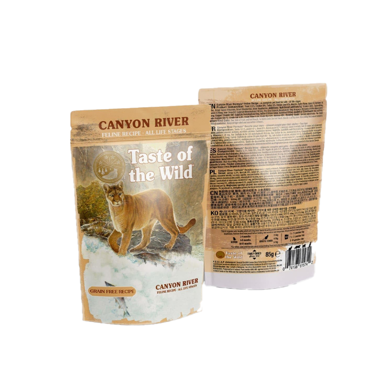 پوچ گربه مسن تیست آف د وایلد با طعم ماهی قزلآلا و سالمون دودی در سس وزن 85 گرم
