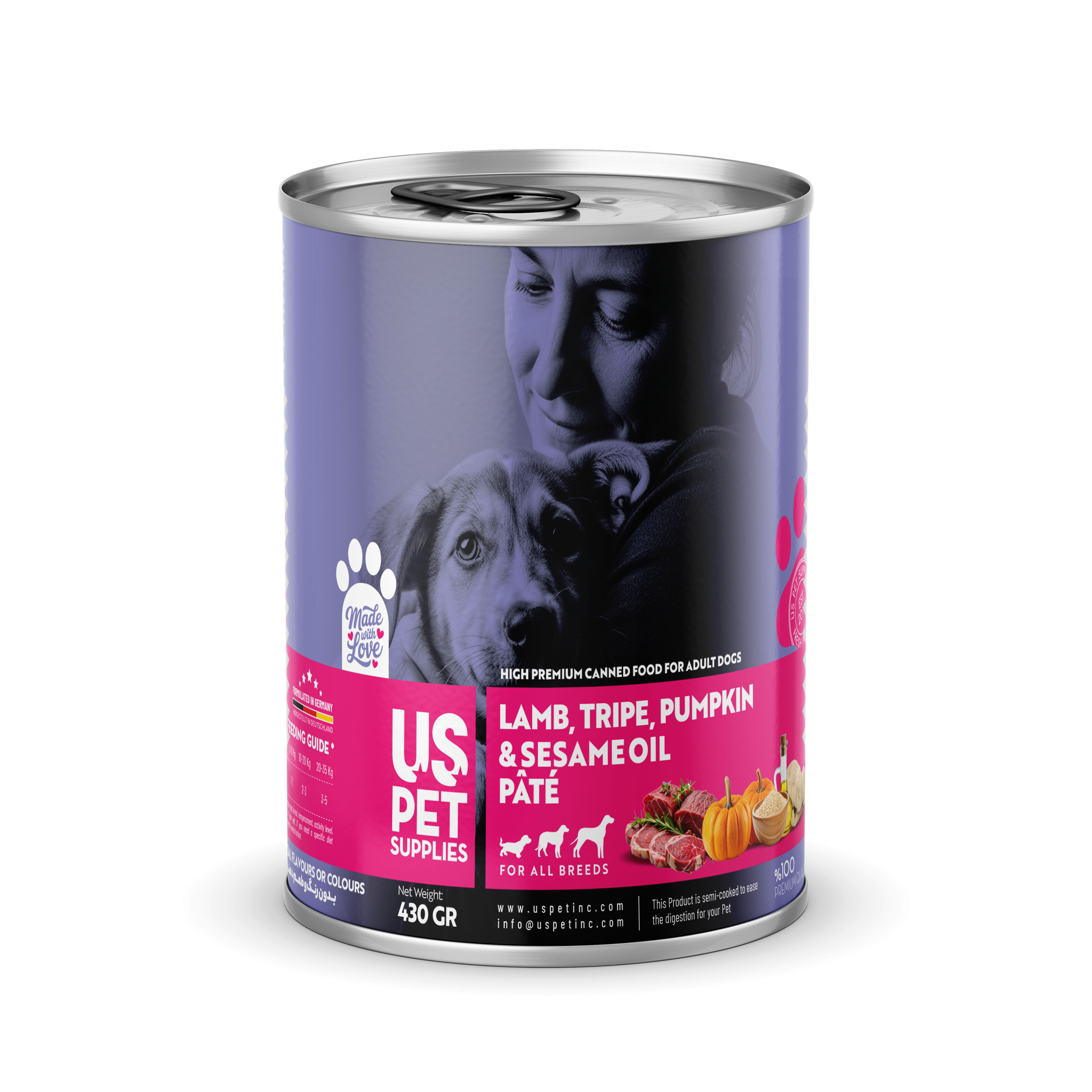 کنسرو غذای سگ یو اس پت مدل های پریمیوم با طعم گوشت بره و سیرابی وزن 430 گرم