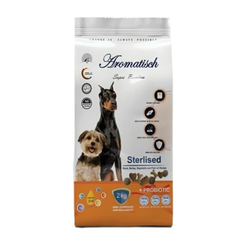 غذای خشک سگ بالغ نژاد بزرگ عقیم شده آروماتیش با طعم گوشت اردک وزن 2 کیلوگرم