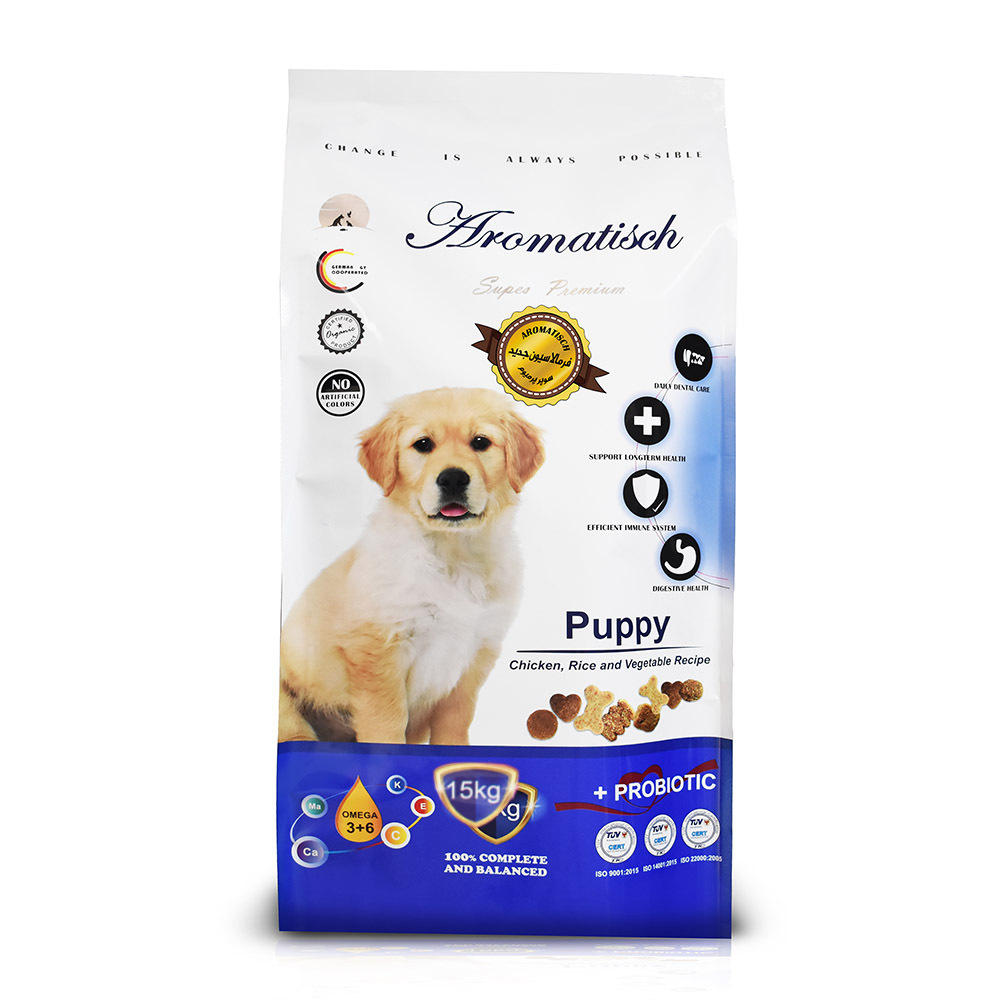 غذای خشک توله سگ نژاد کوچک آروماتیش با طعم مرغ وزن 15 کیلوگرم