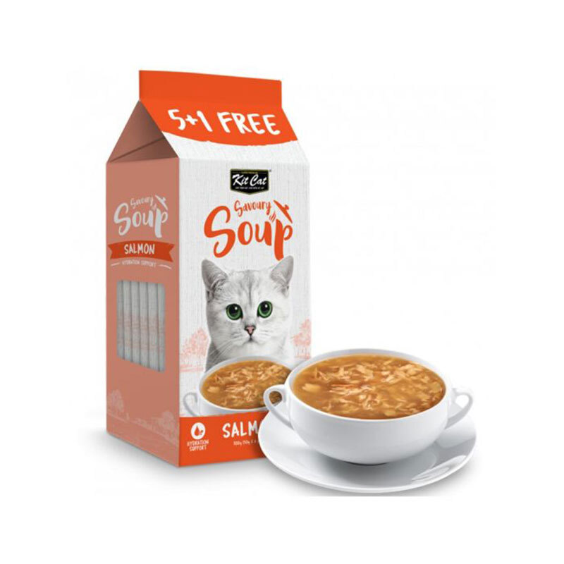 سوپ گربه Kit Cat Savoury Cat Soup با طعم ماهی سالمون یک مکمل غذایی عالی برای گربههاست. این سوپ نه تنها خوشمزه است، بلکه مزایای زیادی برای سلامت و هیدراتاسیون گربه شما دارد.