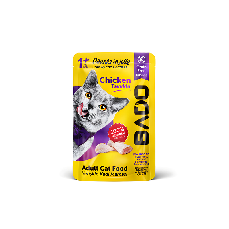 پوچ گربه بالغ بادو با طعم مرغ وزن 85 گرم