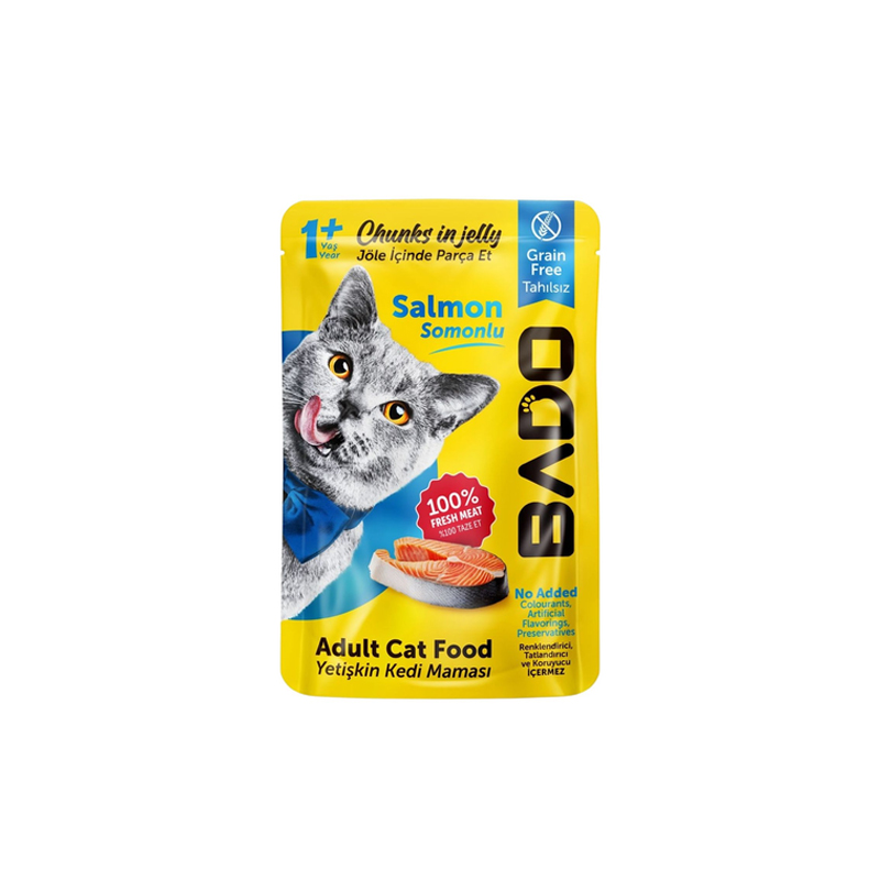 پوچ گربه بالغ بادو با طعم سالمون وزن 85 گرم