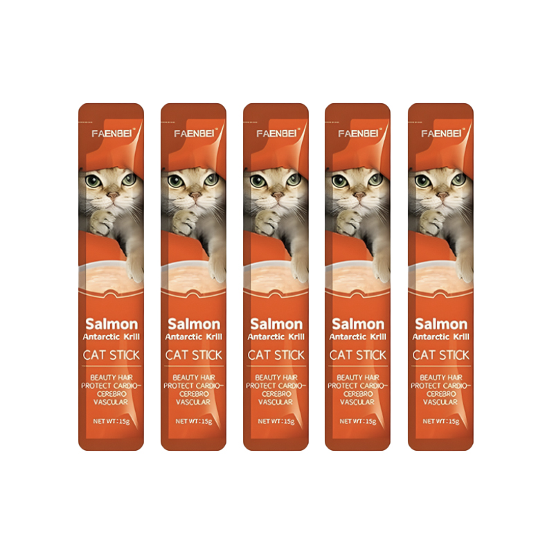 بستنی گربه فنبی با طعم سالمون و میگو Faenbei Cat Stick with Salmon & Krill بسته 5 عددی