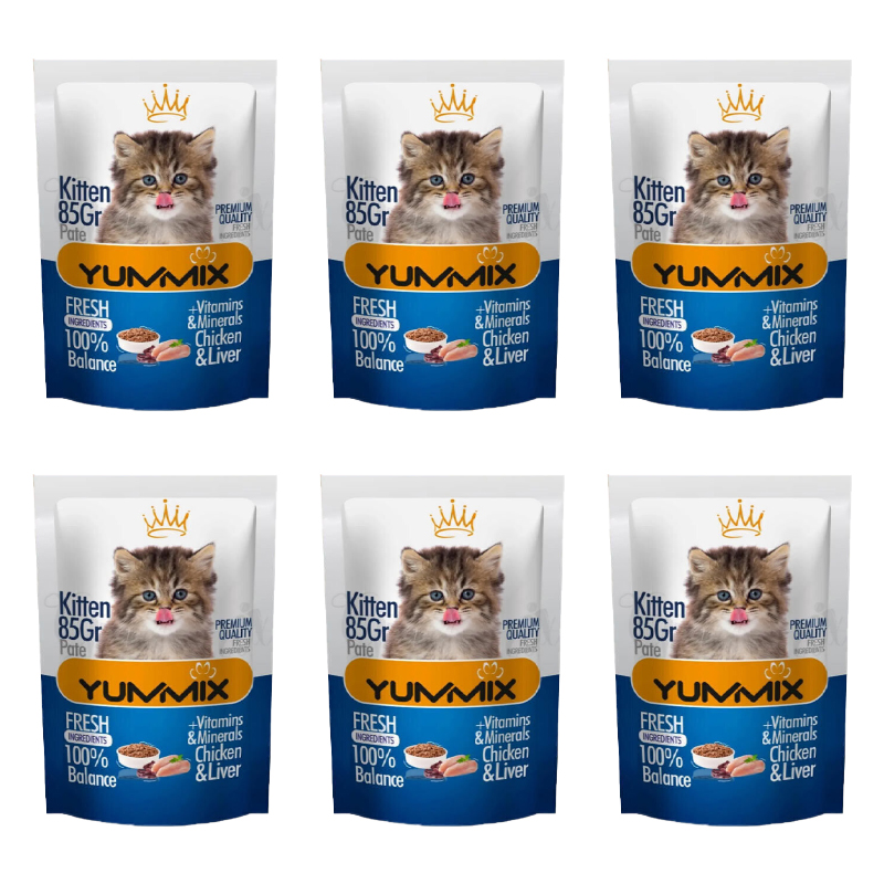 پوچ بچه گربه یامیکس مدل پک پته با طعم جگر و مرغ بسته 6 عددی