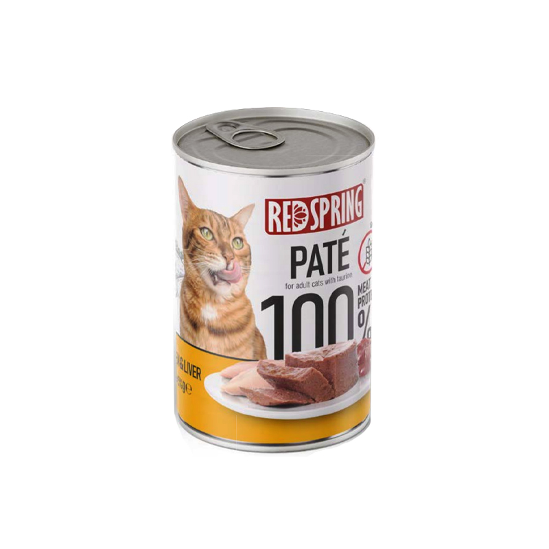 کنسرو غذای گربه رداسپرینگ با طعم مرغ و جگر وزن 400 گرم