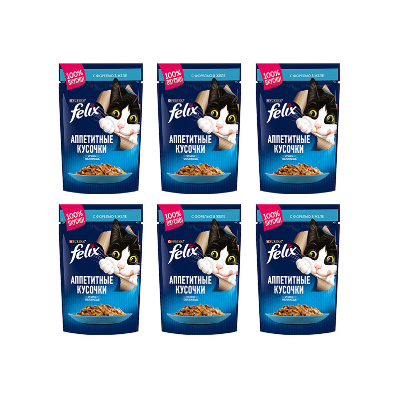 پوچ گربه فلیکس با طعم ماهی قزل آلا در ژله بسته 6 عددی