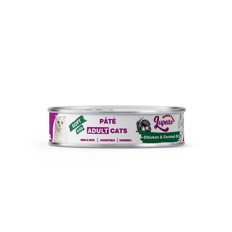 کنسرو غذای گربه پته با طعم مرغ و روغن نارگیل لوپتو Lupetto Pate Cat Food Chicken & Coconut Oil وزن 85 گرم