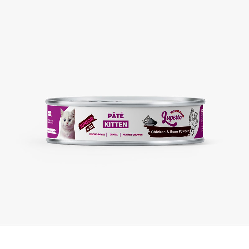 کنسرو غذای بچه گربه پته با طعم مرغ و پودر استخوان لوپتو Lupetto Pate Kitten Food Chicken & Bone Powder وزن 85 گرم
