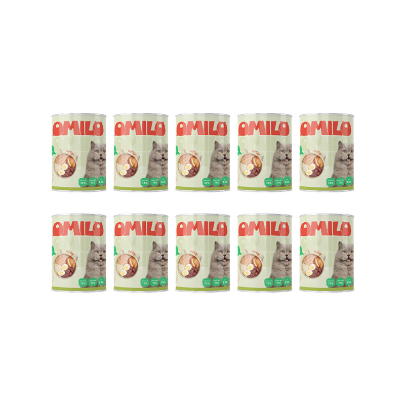 10 عدد کنسرو غذای گربه اومیلو نچرال با طعم مرغ و سیب وزن 400 گرم