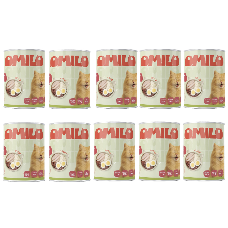 10 عدد کنسرو غذای گربه اومیلو چانک با طعم مرغ و جگر وزن 400 گرم