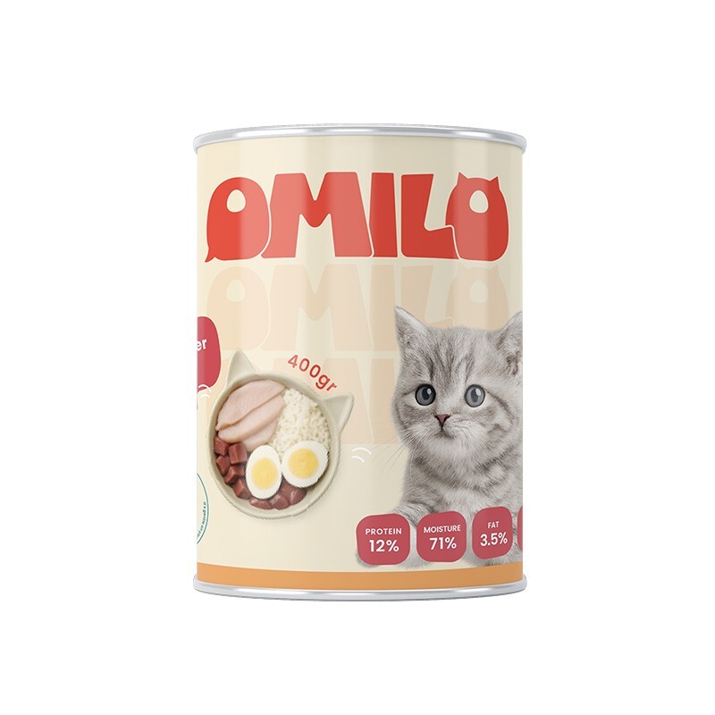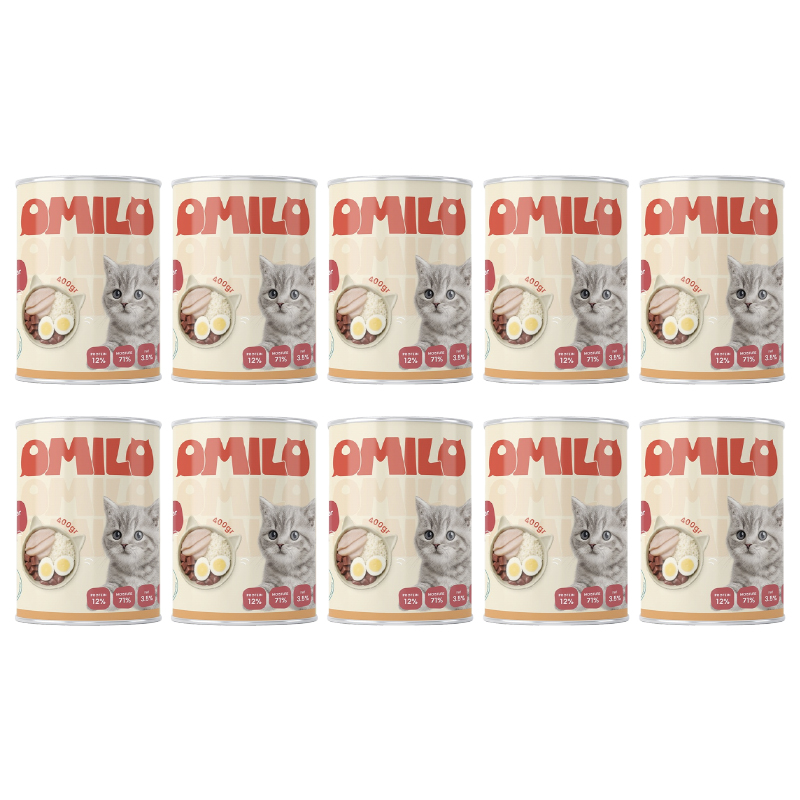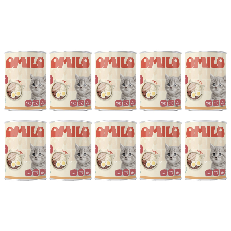 10 عدد کنسرو غذای گربه اومیلو پته با طعم مرغ و جگر وزن 400 گرم