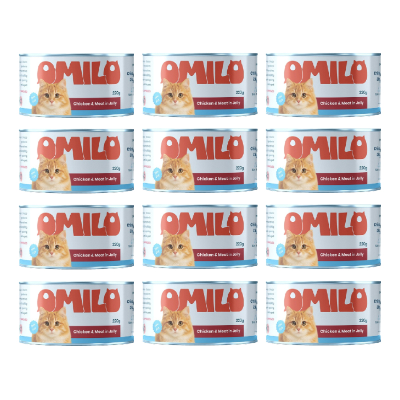 12 عدد کنسرو غذای گربه اومیلو نچرال با طعم مرغ و گاو در ژله وزن 220 گرم